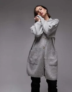 Free People Oversized Longline Button Detail Cardigan In Soft Grey For Women Sandstorm