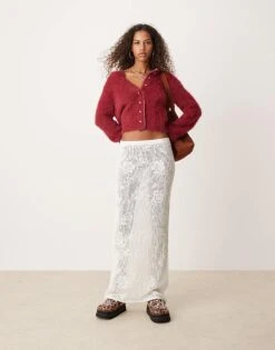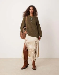 Free People Heart Cable Knit Oversized Jumper In Ivory For Women