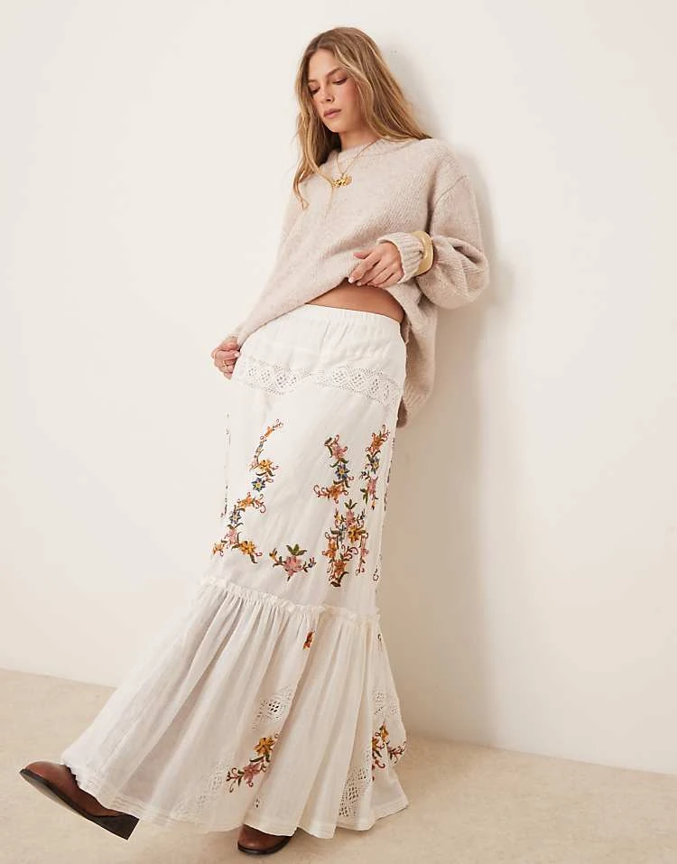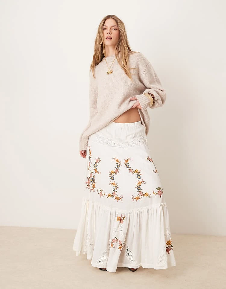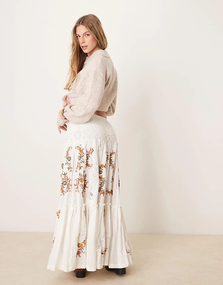 - Floral embroidery details